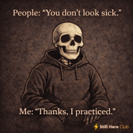 Low-pressure virtual chat for chronically ill folks to vent, joke, and remember we’re still here together.